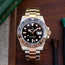 Bezel: Bidirectional black and brown ceramic bezel with 24-hour graduation. Inner engraved Rolex bezel ring